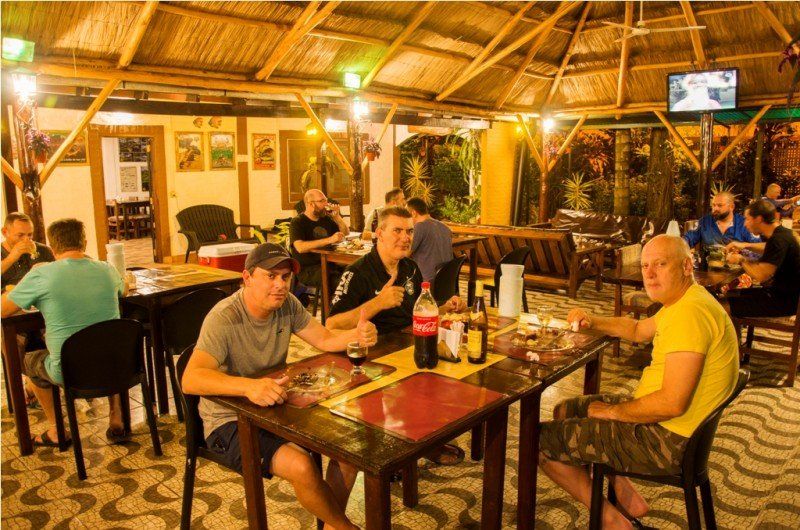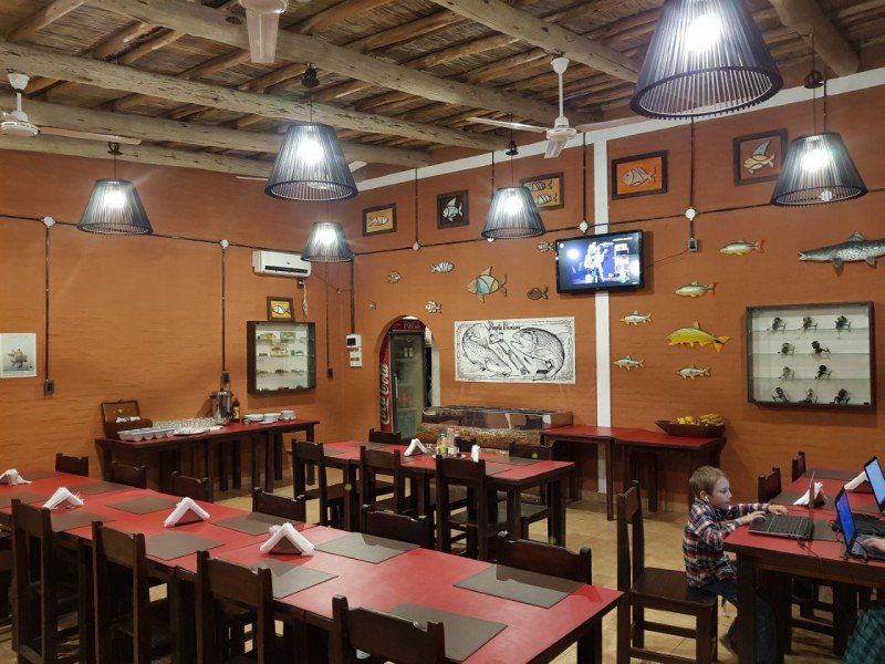 nossa cozinha é super elogiada por nossos clientes, inclui também as bebidas, águas, cervejas, refrigerantes, em garrafas, e até vinhos Finca Beltran ou similar varietal sem limites (Vinhos apenas no salão). Temos as melhores carnes de Buenos Aires, as melhores frutas, e vegetais de toda a argentina. Que combinados com os deliciosos pescados da região compõem um cardápio muito adorado e elogiado pelos pescadores brasileiros. Onde não falta o arroz, feijão, sashimi, churrasco argentino, cordeiro assado, moqueca de surubim, etc. Com as melhores sobremesas, sorvetes e doces da região. Cafés e chás.