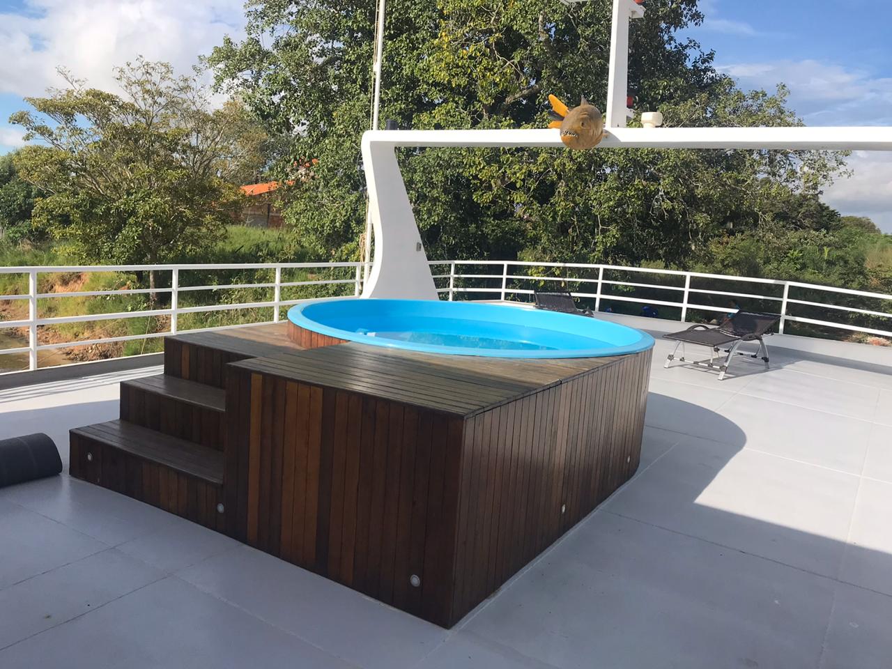 - Deck aberto no terceiro piso, visão panorâmica do pantanal 360 espaço ao ar livre e coberto, PISCINA, churrasqueiras, geladeiras e som ambiente;