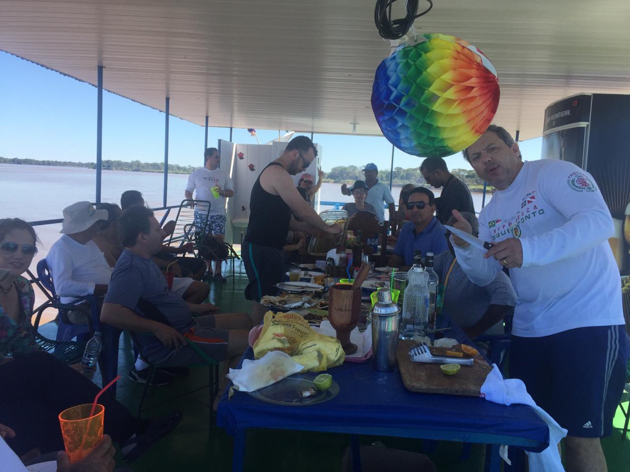na pesca do Rio Araguaia, na região de São Miguel do Araguaia/GO. O diferencial do Barco Hotel é atendimento muito bom, ótima alimentação, ótimos guias de pesca e a melhor delas é justamente o deslocamento no Rio Araguaia em busca do peixe. Aqui na região do Rio Araguaia é possível capturar as grandes