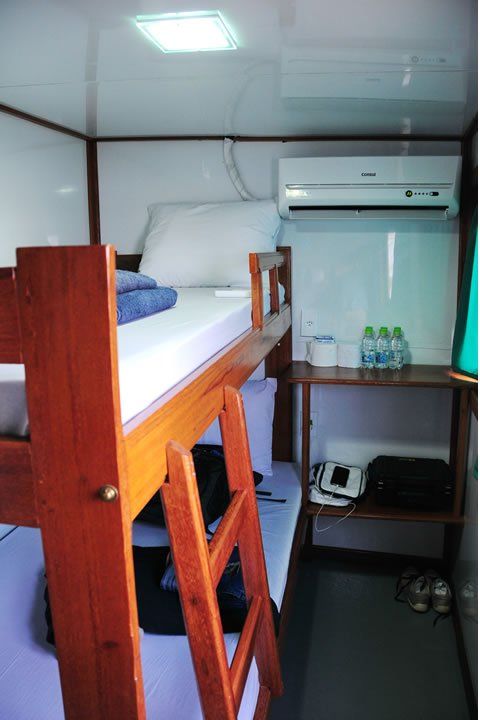 São 08 (seis) suítes duplas equipadas com ar condicionado split e WC privado, com pontos de tomada para recarregar baterias de câmeras, celulares, salão de jantar climatizado com televisão, dvd e aparelho de som.