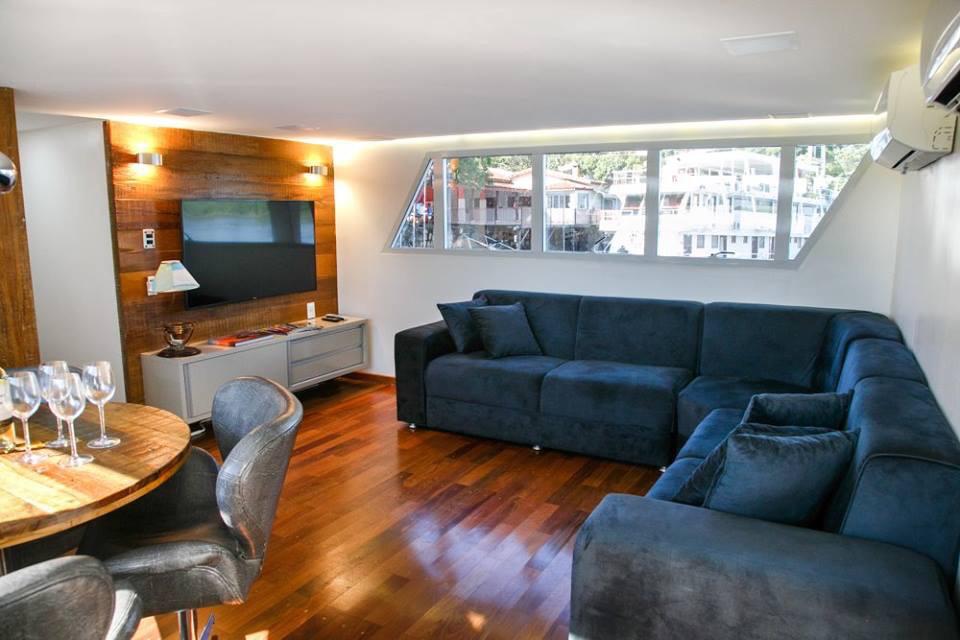 - 5 Suítes duplas privativas, sendo 4 suítes com camas baixas e , com Tv, ar condicionado split individual, banheiro com box,água filtrada, tratada, pressurizada quente e fria,