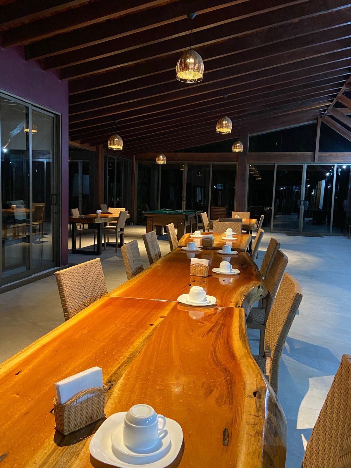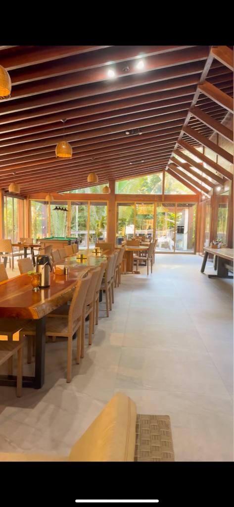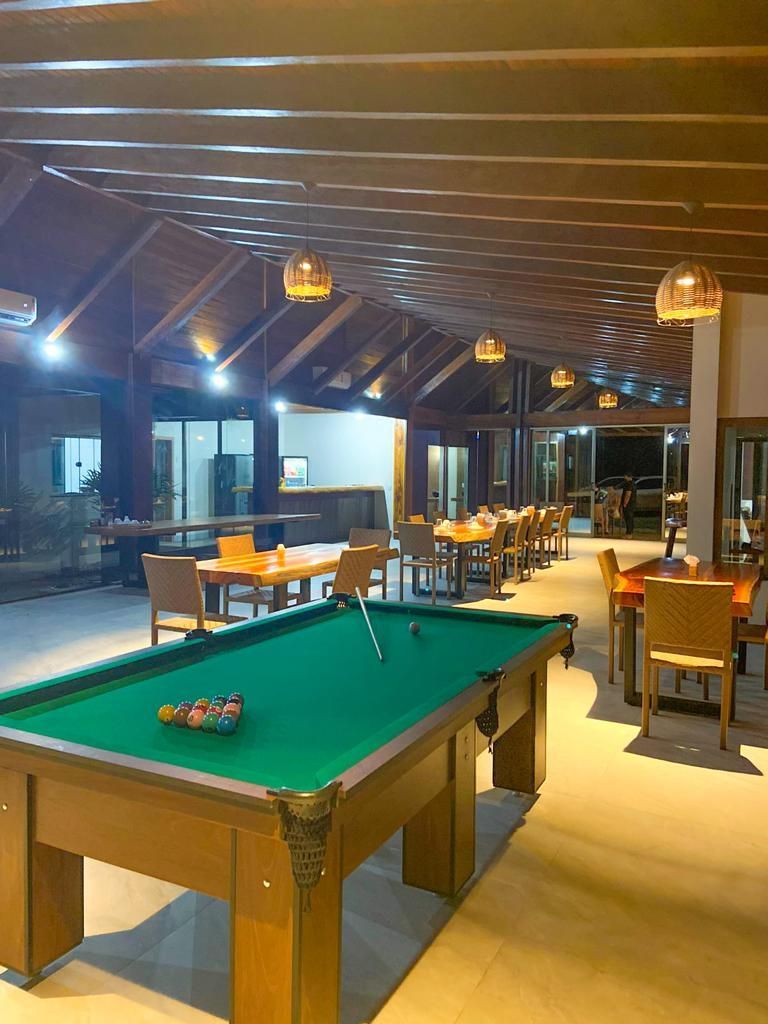 - Alimentação: (café da manhã, almoço, janta, petiscos e caldos); Bebidas: (água, cerveja Heineken e Original, refrigerante, caipirinha de pinga);