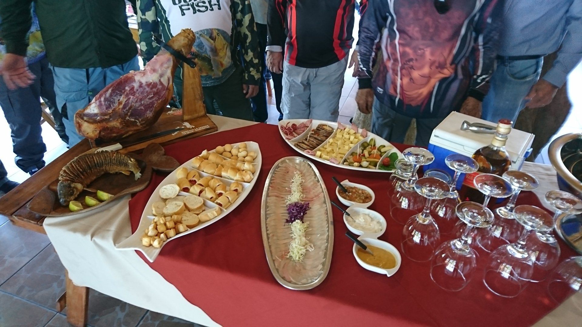• petiscos para serem consumidos no barco ( queijos, salame, azeitona, salgadinhos .