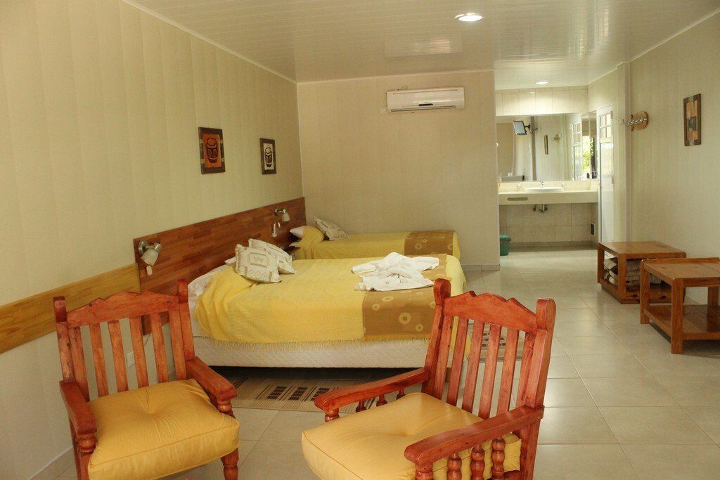 A Pousada possui apartamentos espaçosos com capacidade para 80 pessoas, sendo 5 cabanas e dois blocos de apartamentos duplos e triplos, banheiro privativo, frigobar, ar condicionado, tv , piscina e quiosque com vista para o Rio , Restaurante climatizado , wifi , sala de jogos de frente para o Rio Paraná.