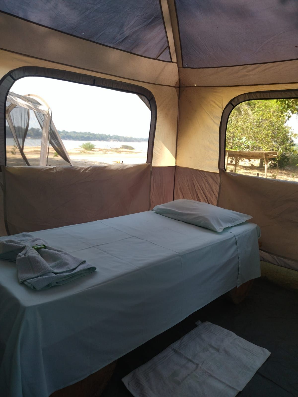Assim como a nossa base avançado no qual utilizamos grandes barracas Coleman de 1.90Mts de altura, toda equipada com camas e roupas de cama e banho.