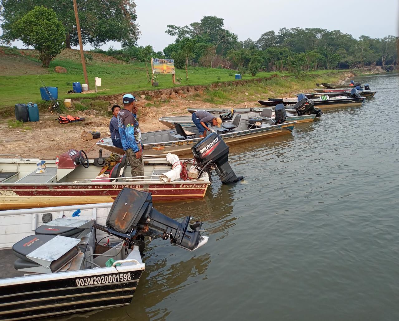 Barcos equipados com motor de popa, motor elétrico, caixa térmica , , guias experientes e conhecedores dos rios e lagos da região.