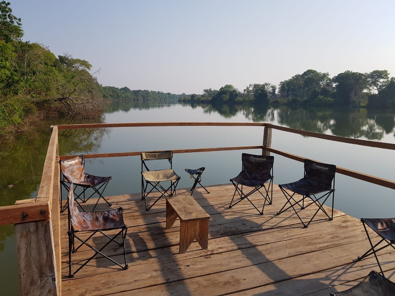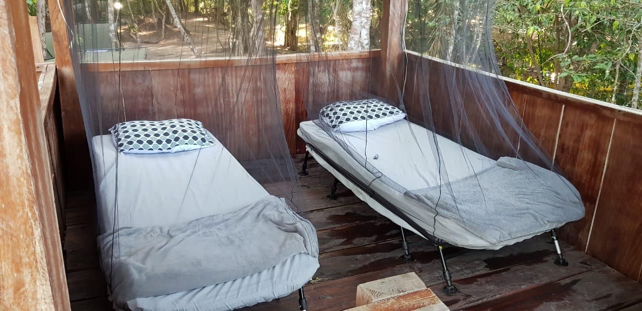 privativo e cada um acomodará somente dois pescadores para melhor conforto e também possuí infraestrutura e equipe completas para preparo das refeições, refeitório, redes para descanso distribuídas por toda área, um grande píer para contemplação da natureza e embarque/desembarque com segurança nos barcos de pesca, maquina de lavar roupa, gerador elétrico (fica em funcionamento das 18:00 até às 00:00) além de tomadas para uso dos pescadores, tudo elaborado e cuidado para melhor atender os pescadores durante a estadia no Javaé Camp.