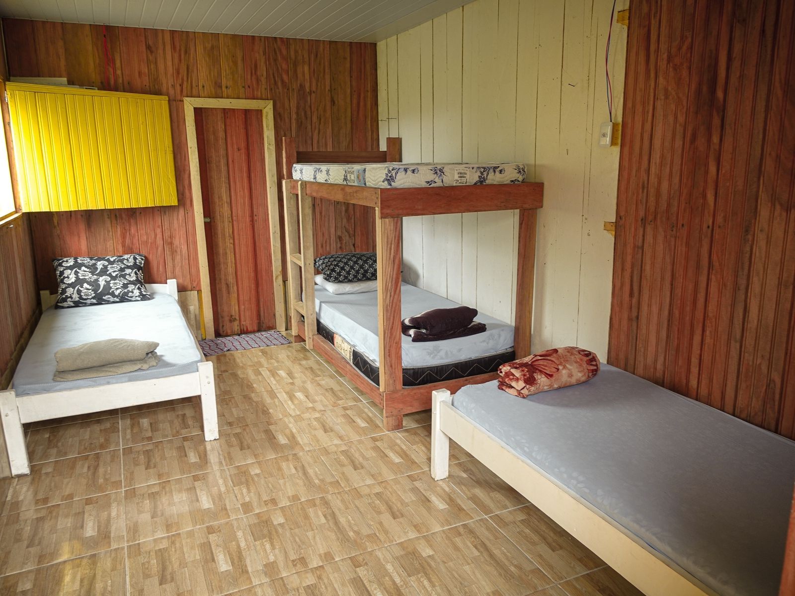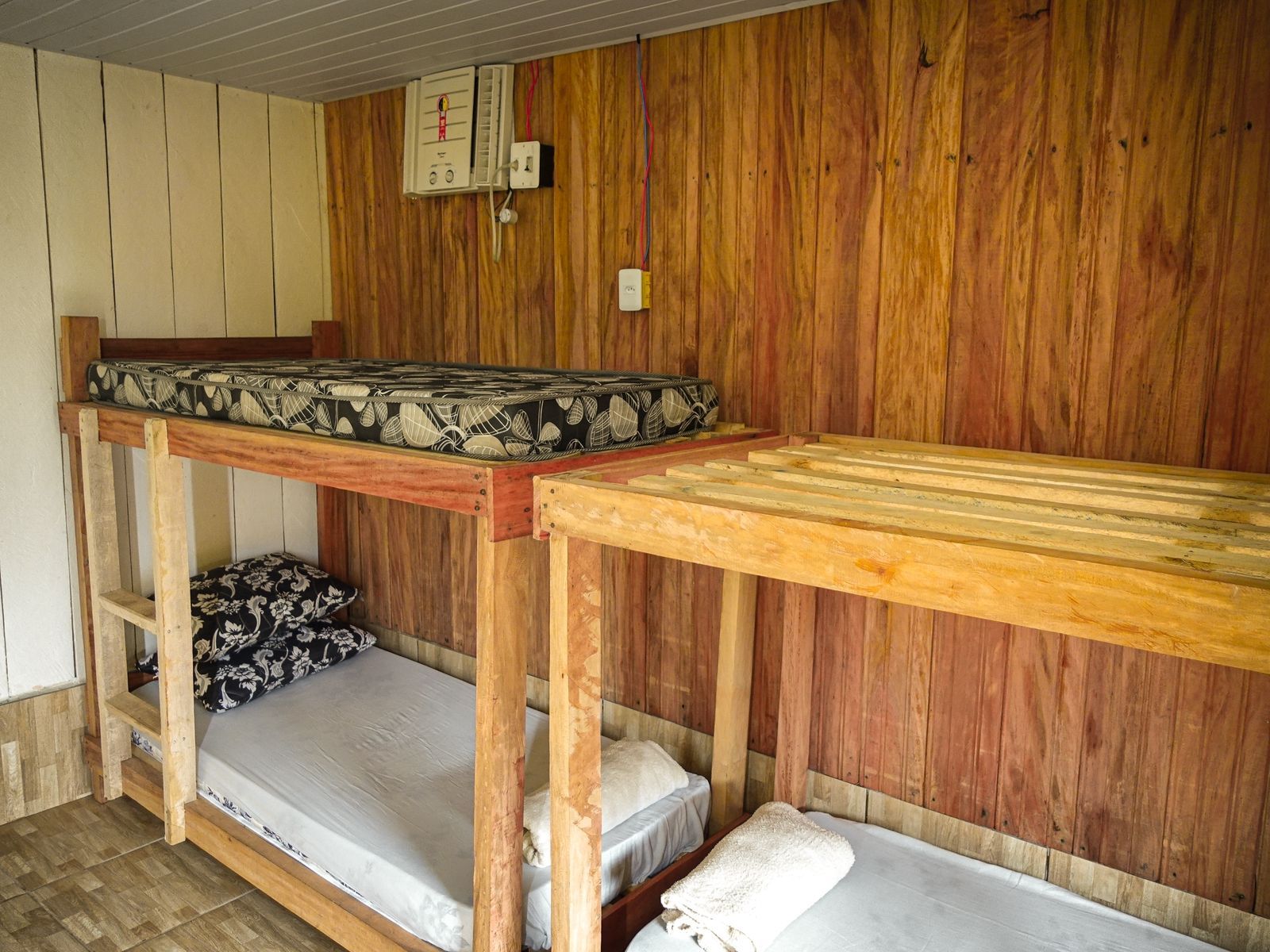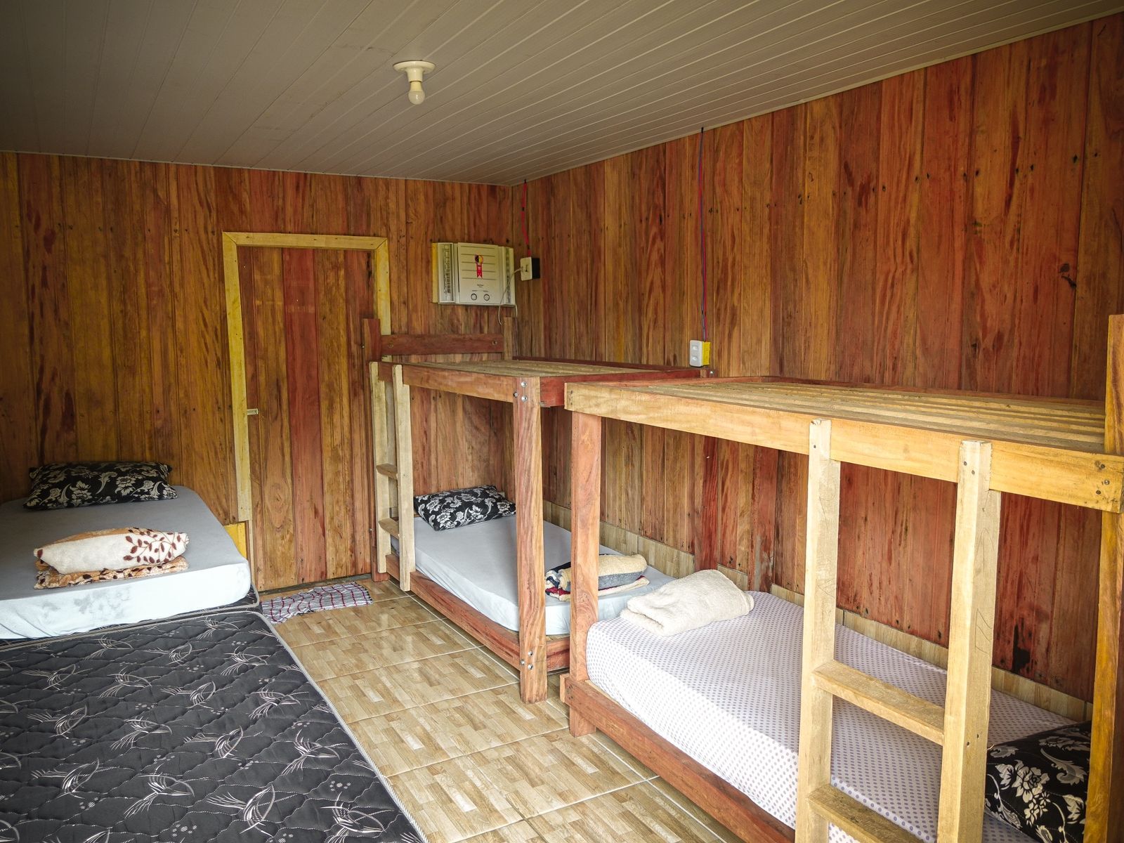 triplos, suítes climatizadas, chuveiro quente, wifi , ar condicionado, camas de solteiro , ventilador e beliches. A Pousada comporta 12 pescadores