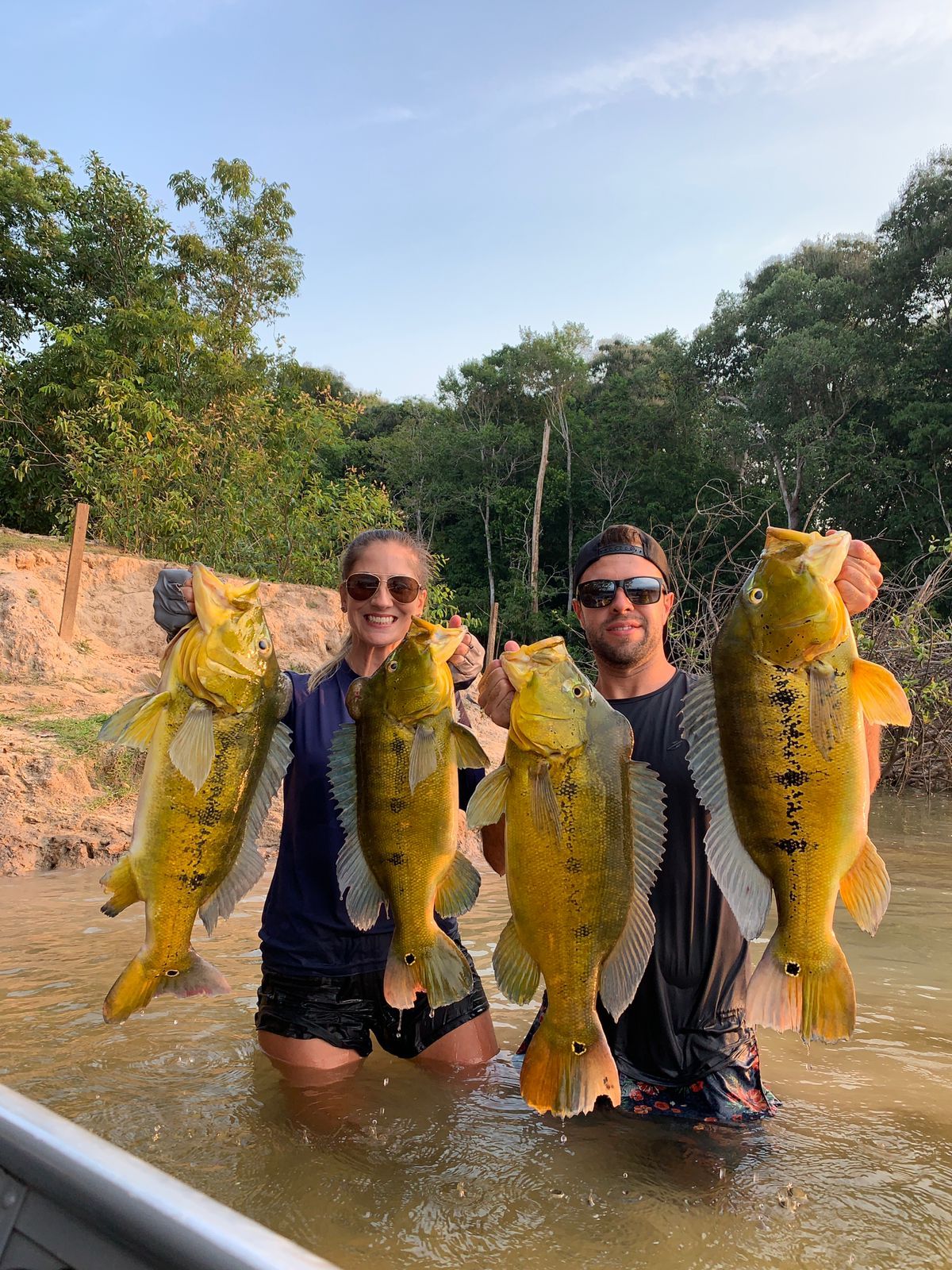 Várias espécies de peixes são encontradas no Rio Teles Pires são Tucunaré ,