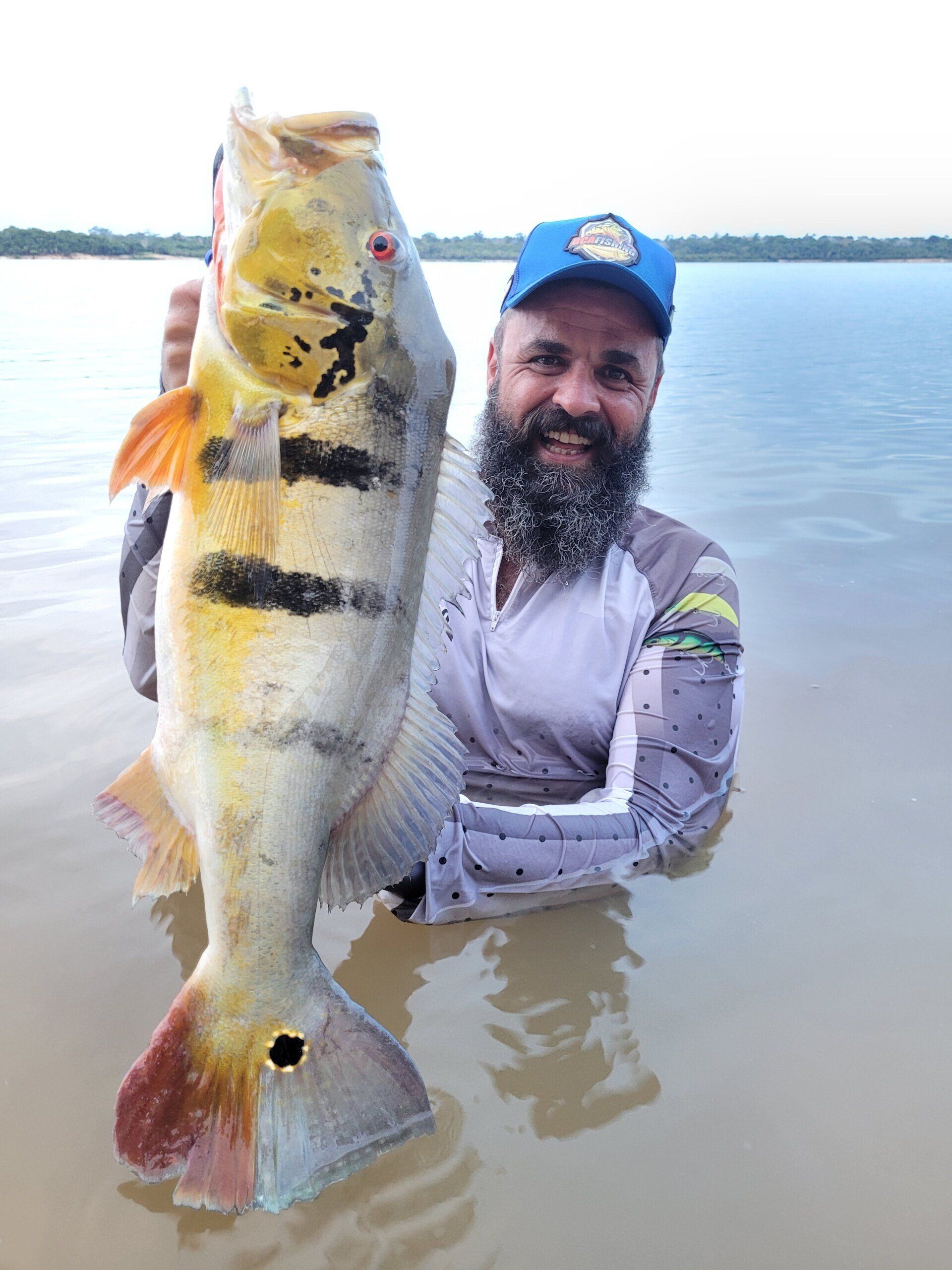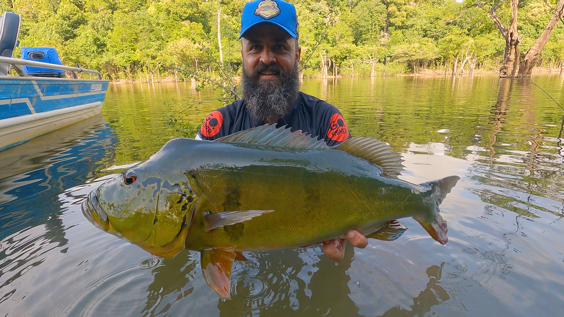 Tucunaré Açu, que pode chegar a 12 kg e aruanâs.