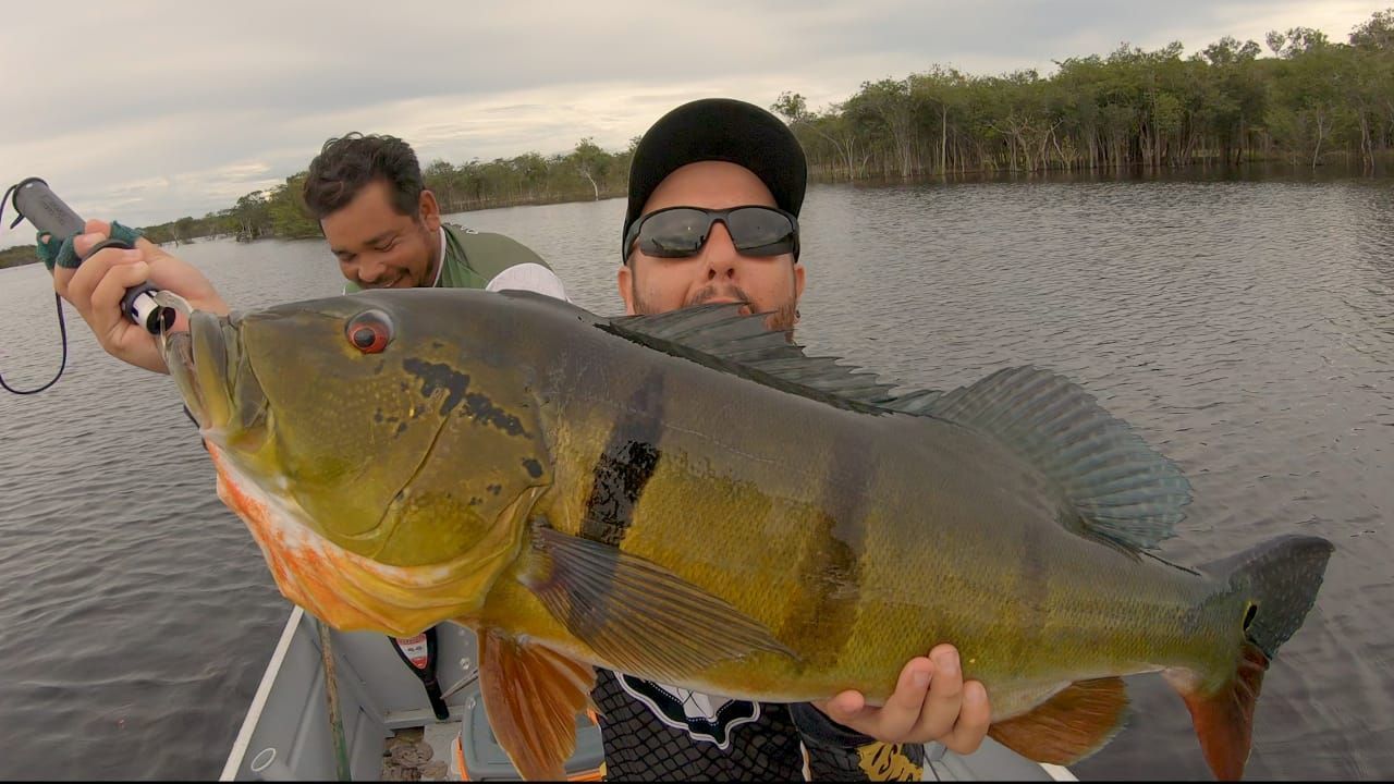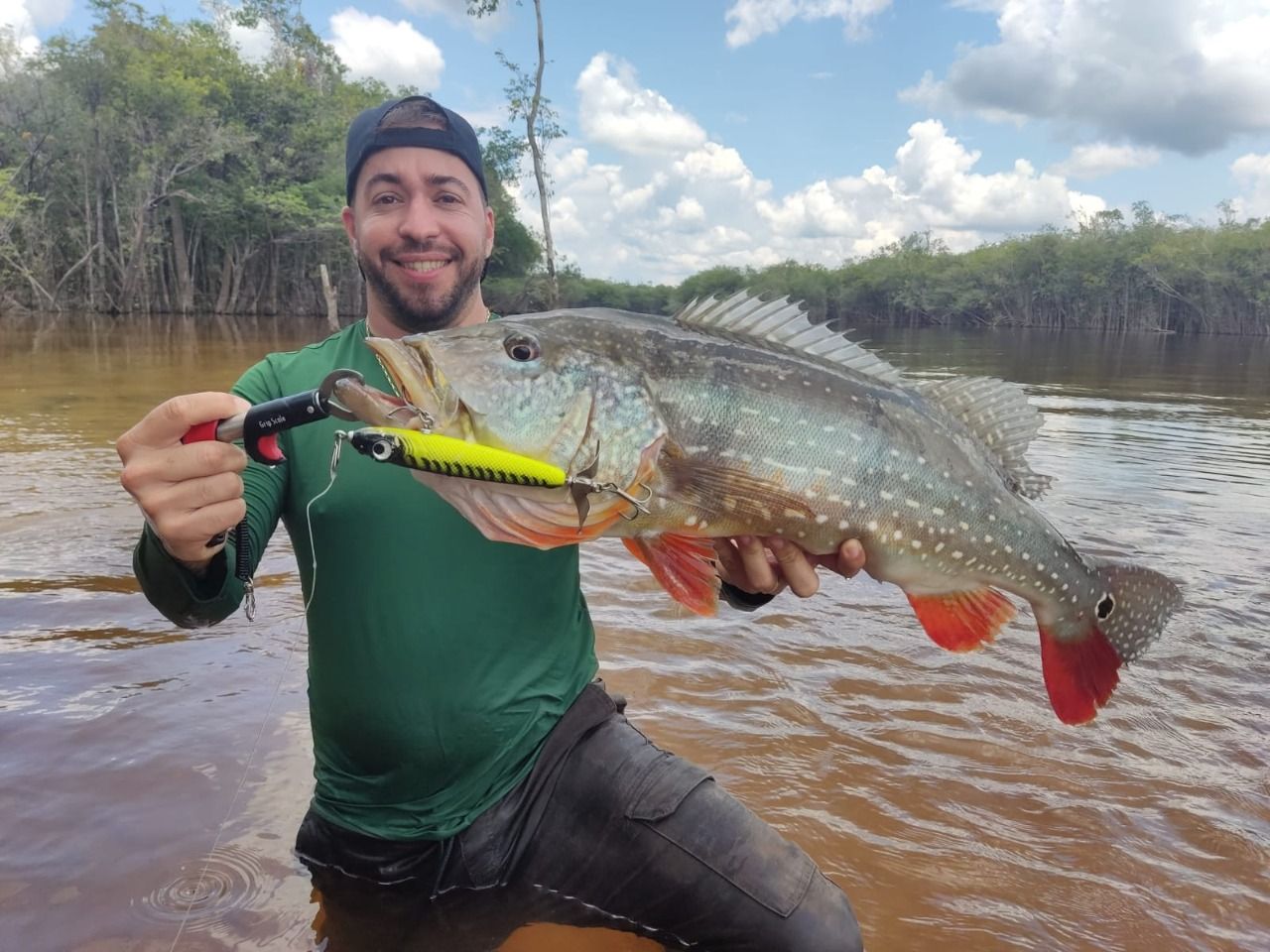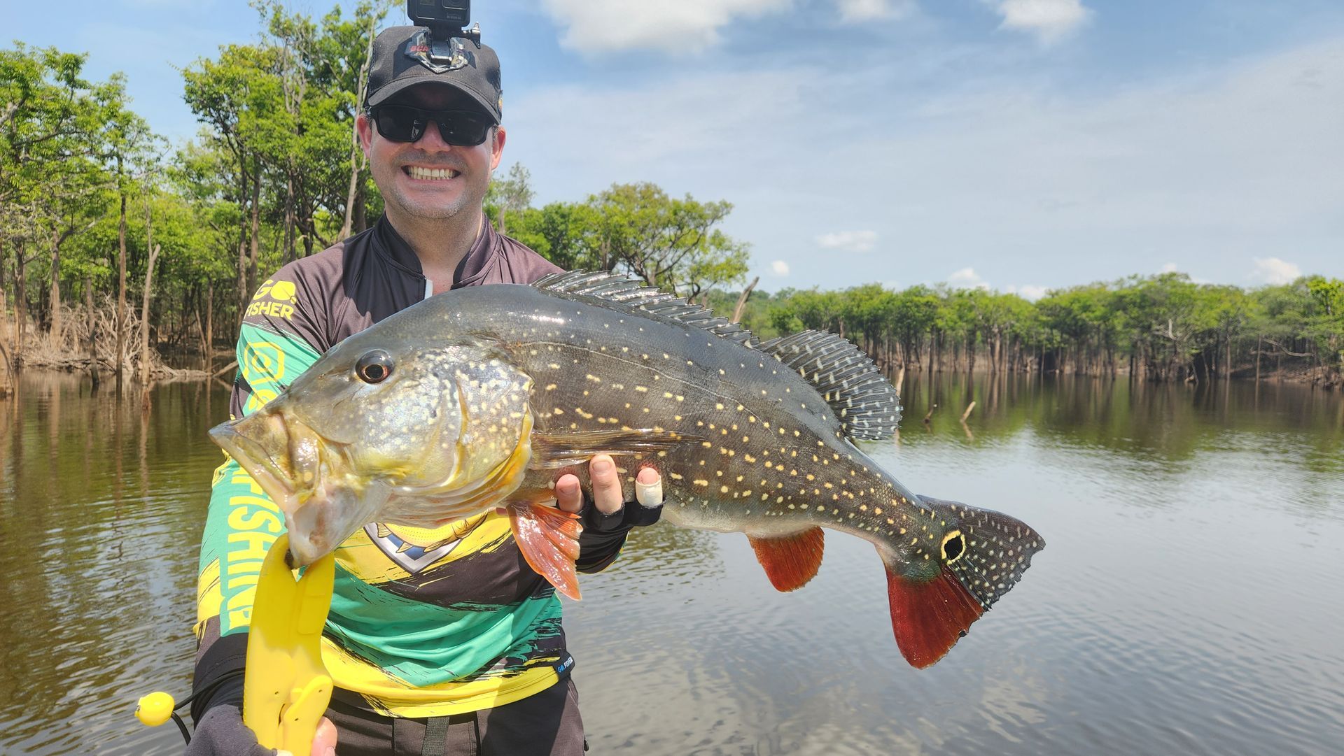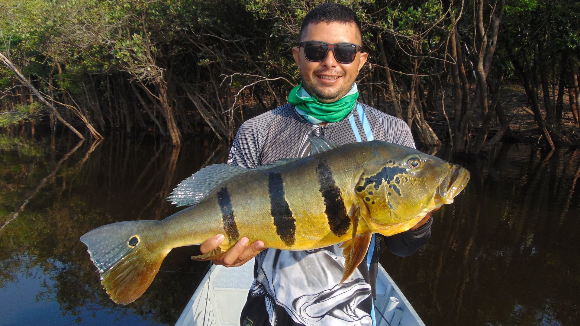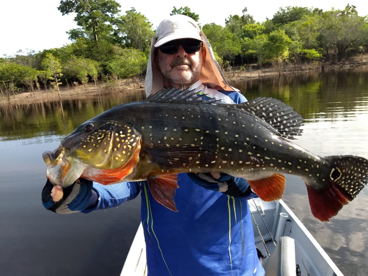 Tucunaré Açu, que pode chegar a 12 kg e aruanâs.
