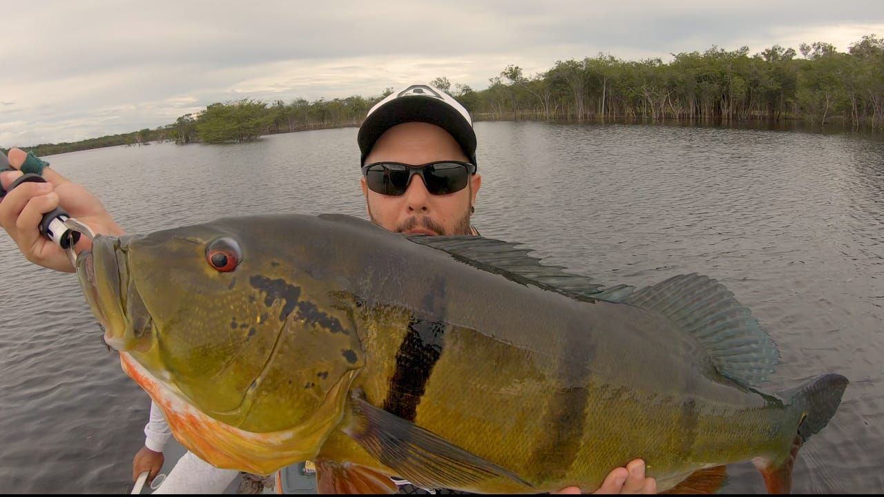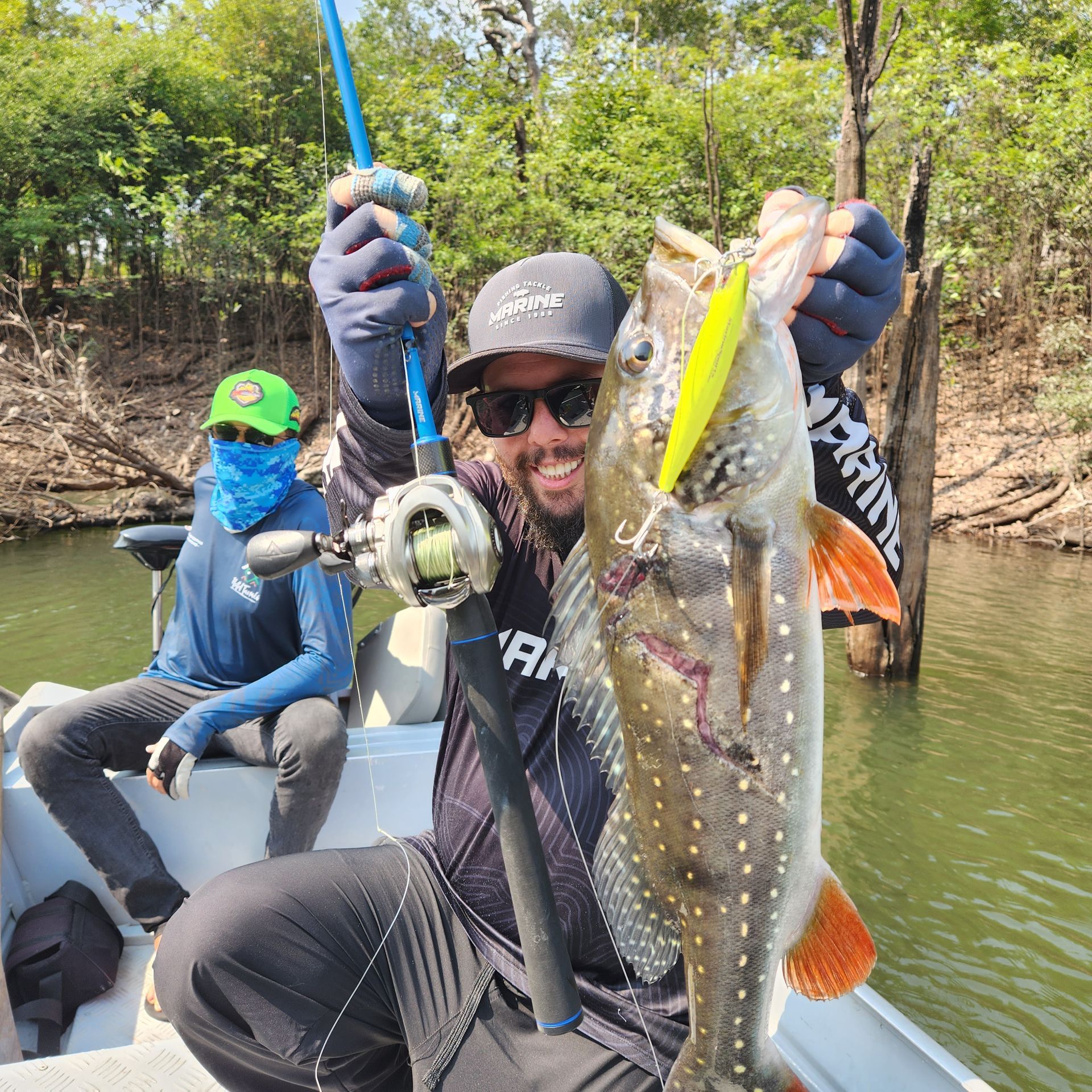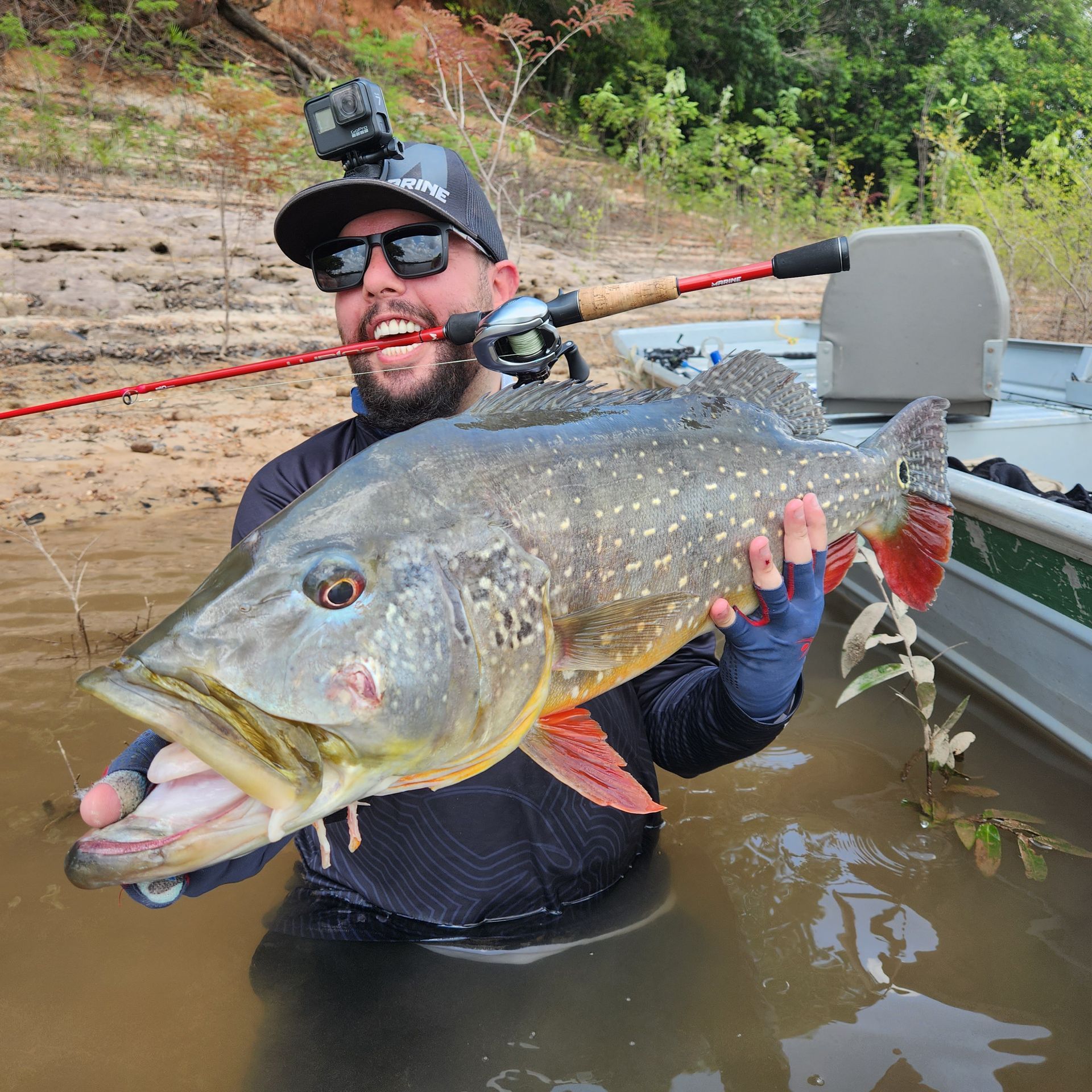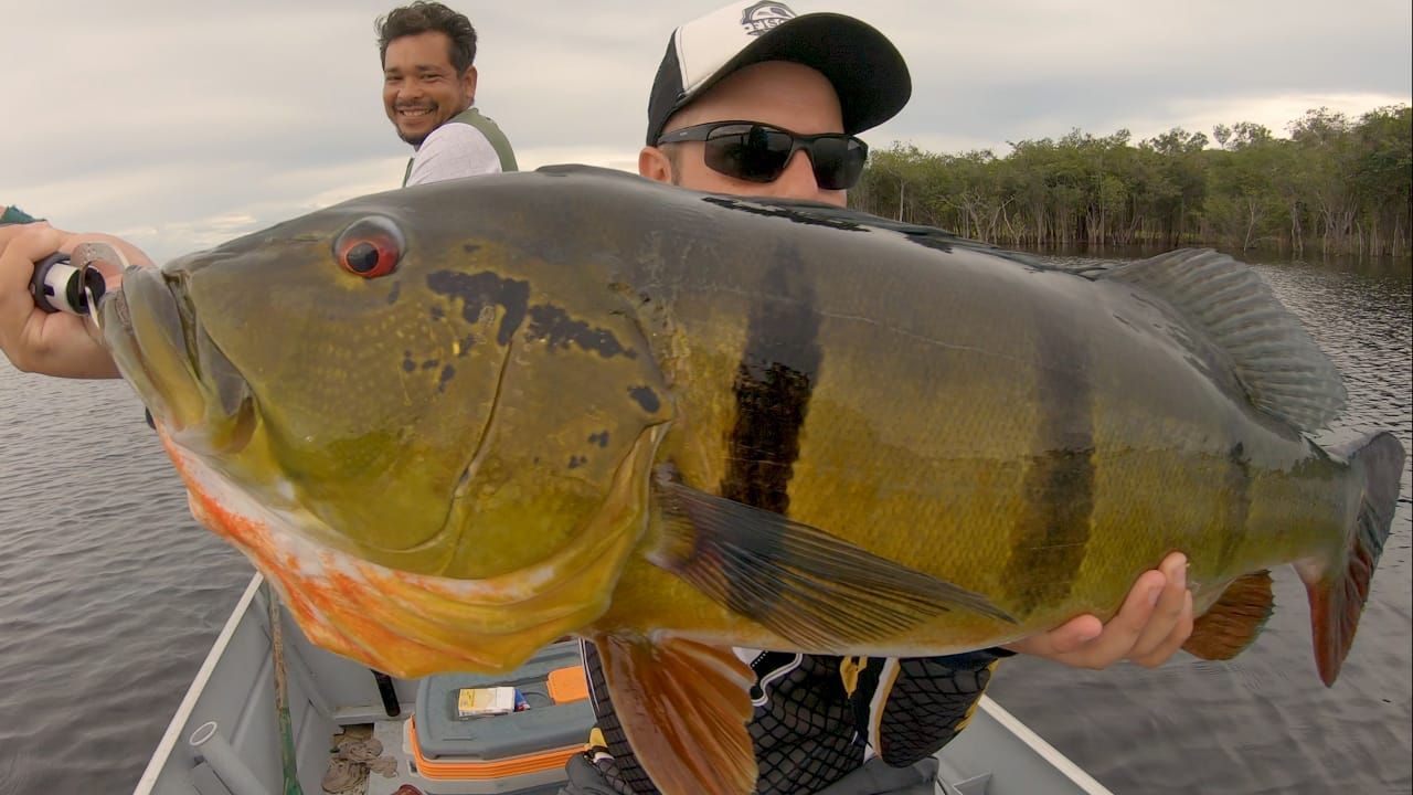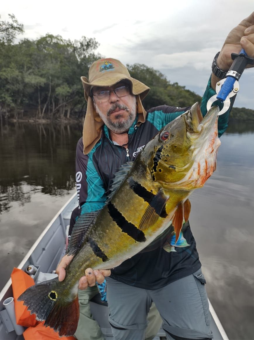 Tucunaré Açu, que pode chegar a 12 kg e aruanâs.