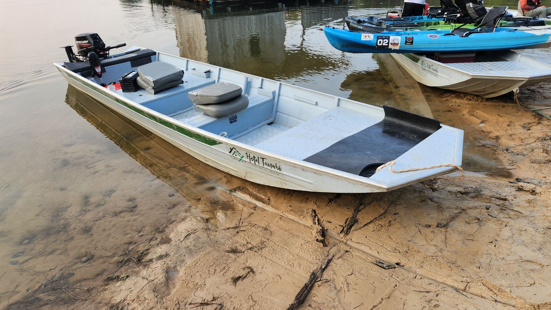 Barcos equipados com motor de popa, motor elétrico, caixa térmica (levar bebidas e lanches) cadeira giratória, coletes salva vida, com guias experientes e conhecedores dos rios e lagos da região.