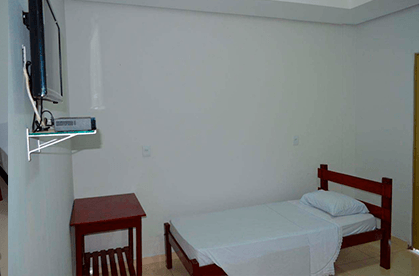 - Suíte dupla de solteiro, com ar condicionado, televisão e frigobar.