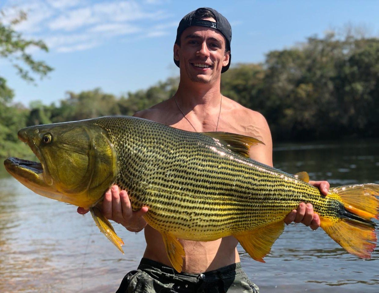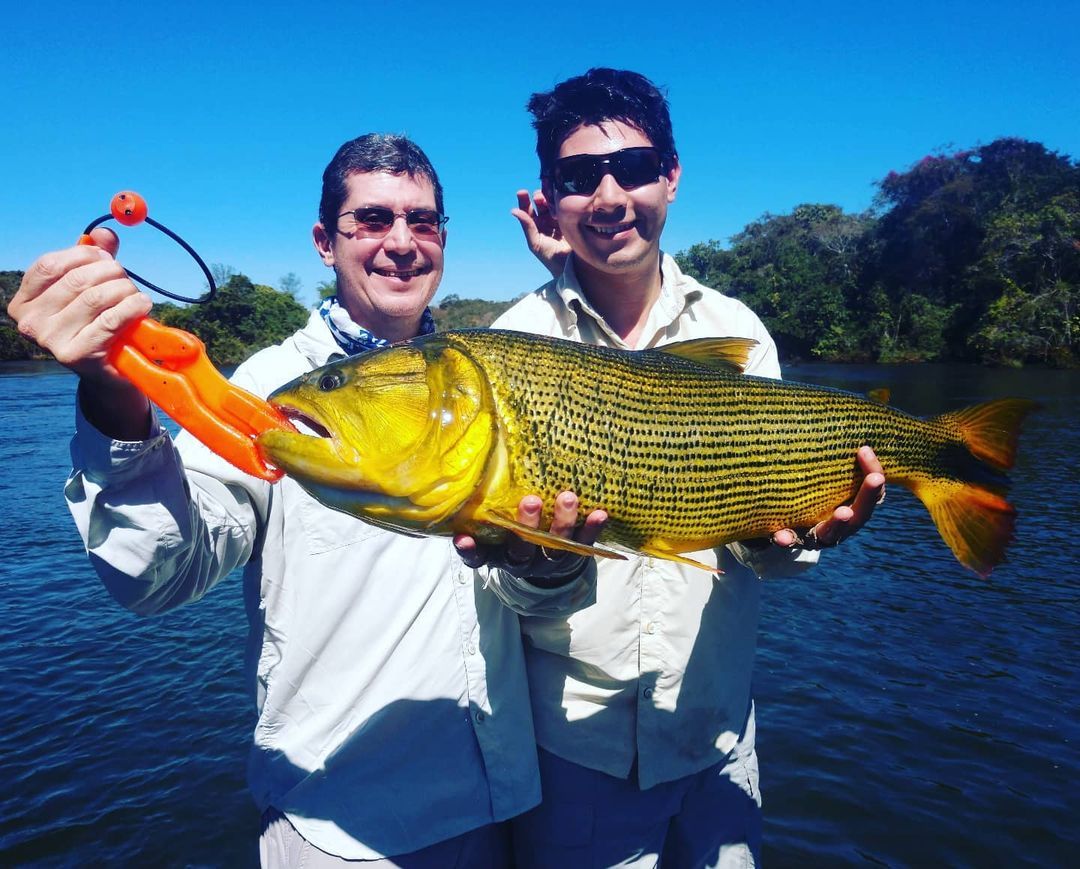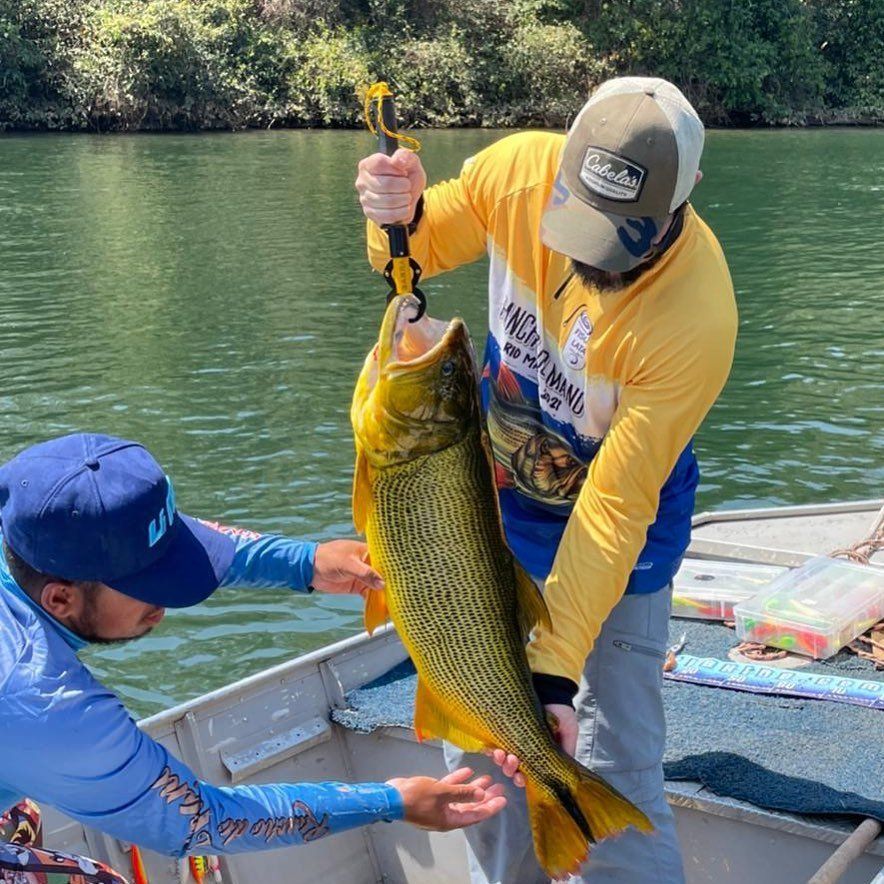 Material pesca Dourado com Iscas Vivas para Rio Manso MT (iscas pequenas): Caso as iscas vivas sejam iscas menores recomendamos usar Varas maciças de 6 pés de 25 a 40 libras e carretilha media / rápida com velocidade superior a 6:0 de recolhimento e linha 40 ou 50 libras de multifilamento e leader de fluoro carbono de 0,62 mm.